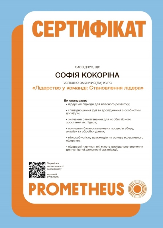 У рамках дисципліни «Вступ до спеціальності» майбутні управлінці пройшли курс «Лідерство у команді: становлення лідера». Даний курс прокачує навички комунікації та прийняття рішень, вчить самокритиці та емоційному інтелекту, шукати натхнення та дарувати мотивацію своїй команді. Лідерські якості мають вирішальне значення для майбутнього управлінця, адже саме вони визначають його здатність не лише керувати процесами, а й викликати бажання рухатись вперед.