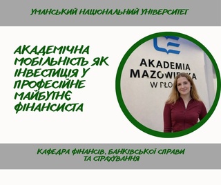 Міжнародна академічна мобільність: здобувачка спеціальності 072 «Фінанси, банківська справа та страхування» завершила навчання за програмою ERASMUS+ у Польщі