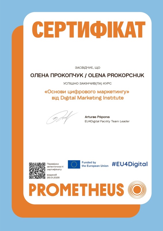 - «Основи цифрового маркетингу» – сприяв розвитку навичок просування освітніх та наукових проєктів у цифровому середовищі;