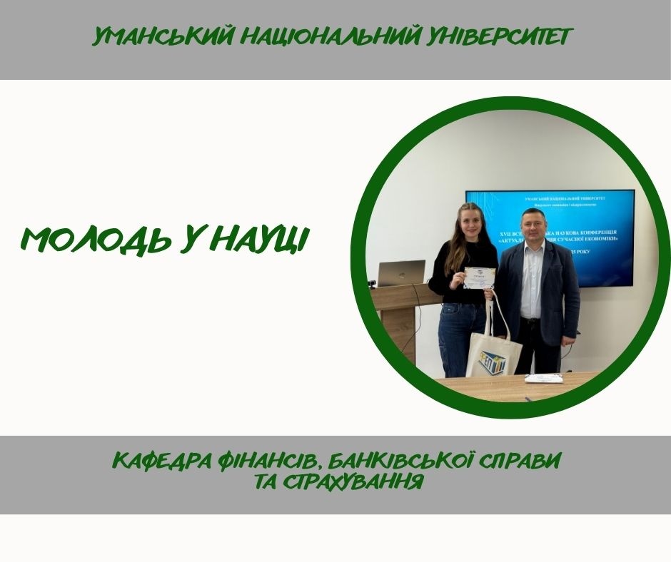 Викладач-стажист кафедри фінансів, банківської справи та страхування УНУ Олександра ЯКОВЕНКО взяла участь у роботі XVІІ Всеукраїнської наукової конференції факультету економіки і підприємництва «АКТУАЛЬНІ ПИТАННЯ СУЧАСНОЇ ЕКОНОМІКИ» .