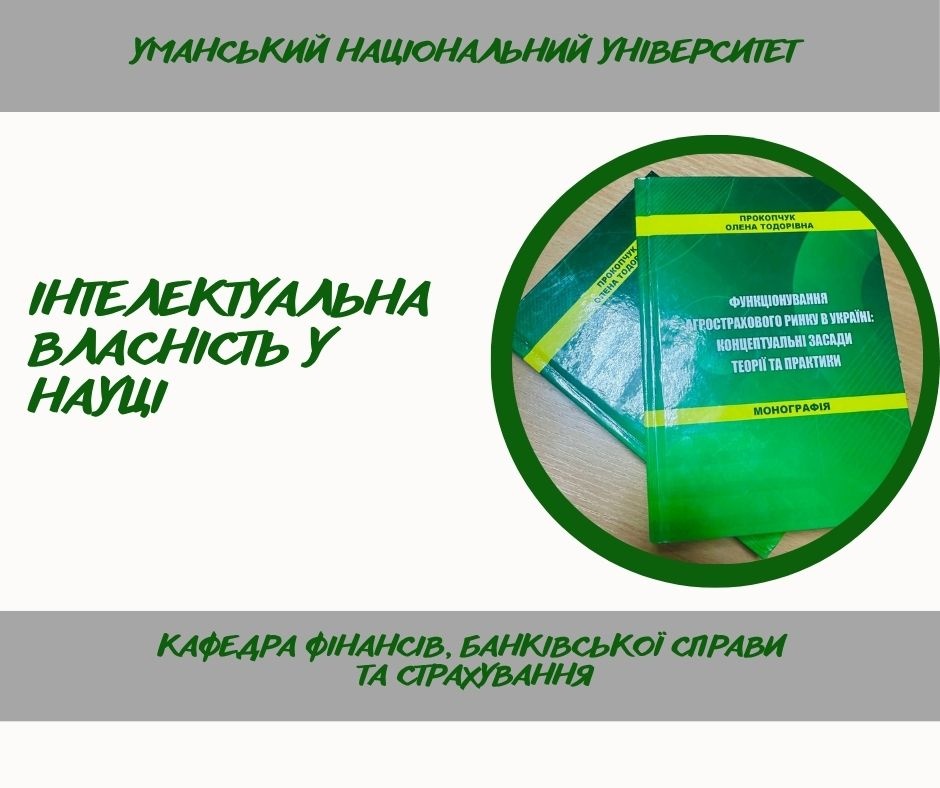 Отримано Свідоцтво про реєстрацію авторського права на монографію «Функціонування агрострахового ринку в Україні: концептуальні засади теорії і практики», автор Олена ПРОКОПЧУК.